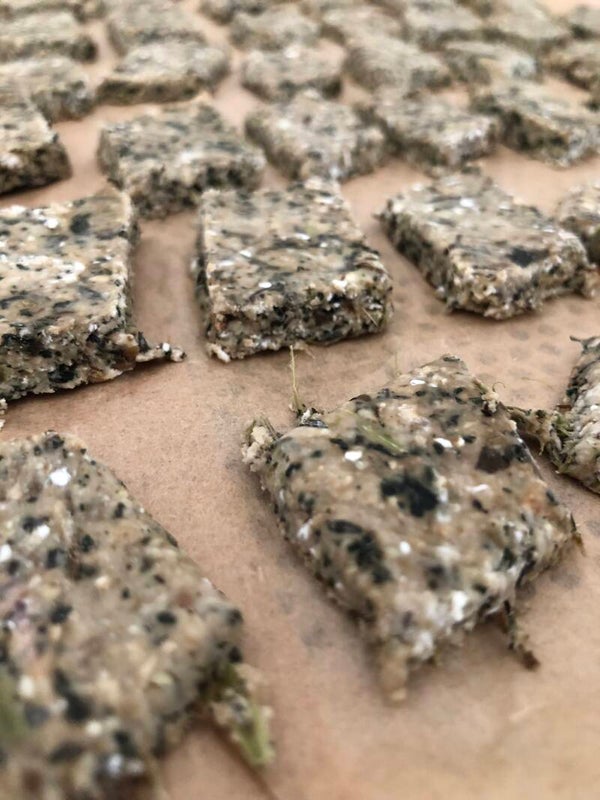 Flocons d’avoine, graines de lin, graines de chia, feuilles, fleurs et épices selon les recettes, ainsi que quelques petits plus naturels pour des biscuits savoureux et durables — sans jamais compromettre leur naturalité.